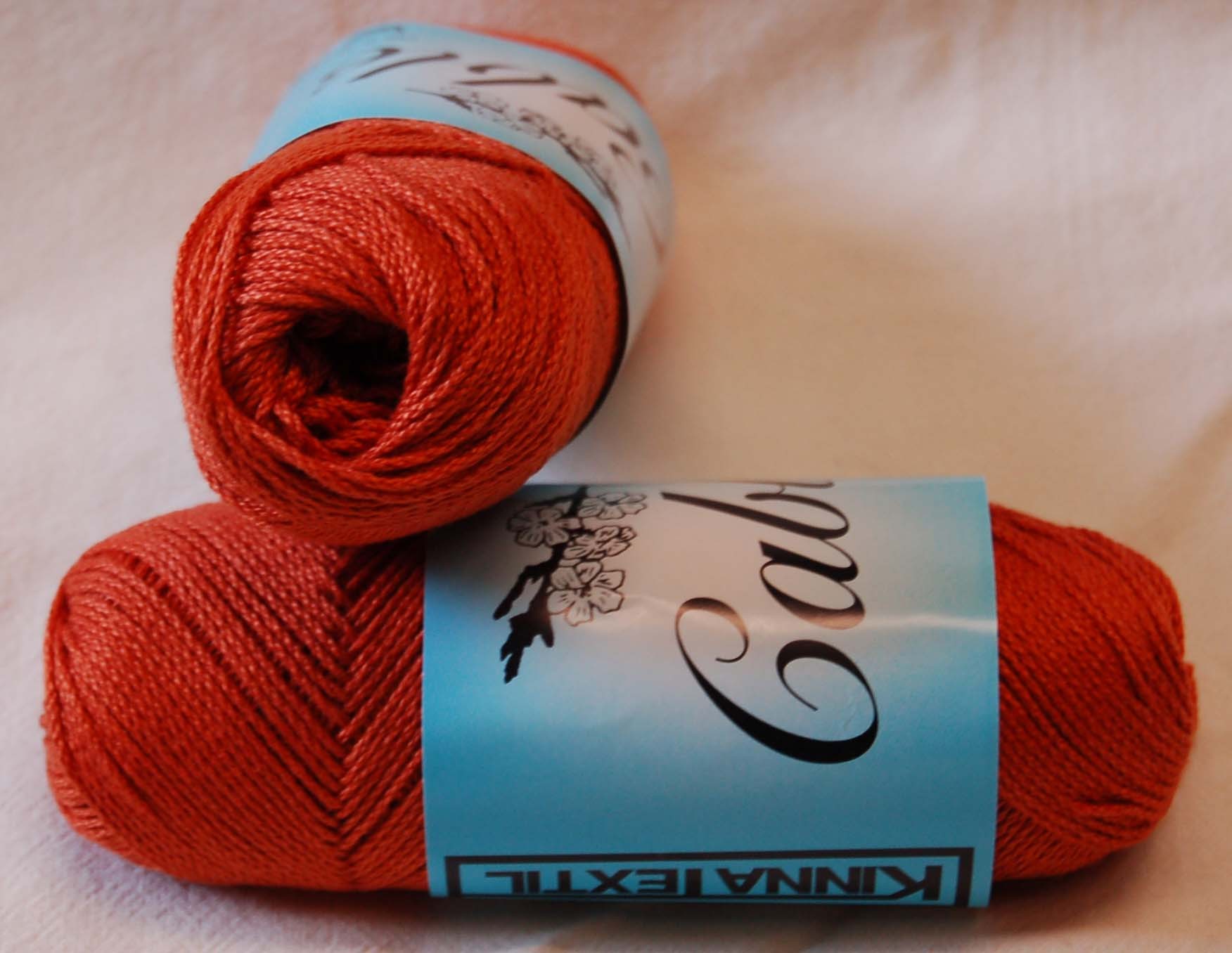 Cablé 12/6 härva 6003 orange Kinna textil Kabeltvinnat 100 % merciserat bomull. 200 gram per härva, ca 680 meter. Stickor 3, virknål 2-2,5. 60 grader maskintvätt. 149 kr