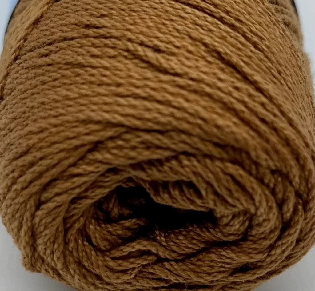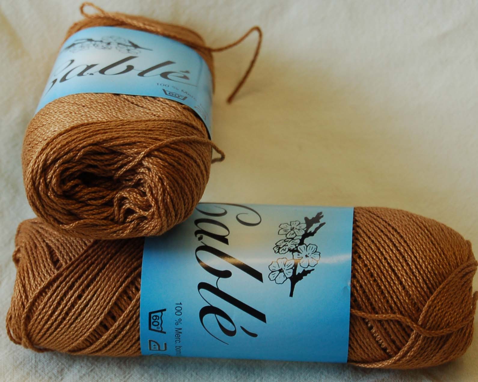 Cablé 12/6 nystan 2013 mörkbrun Kinna textil Kabeltvinnat 100 % merciserat bomull. 50 gram per härva, ca 170 meter. Stickor 3, virknål 2-2,5. 60 grader maskintvätt. 45 kr