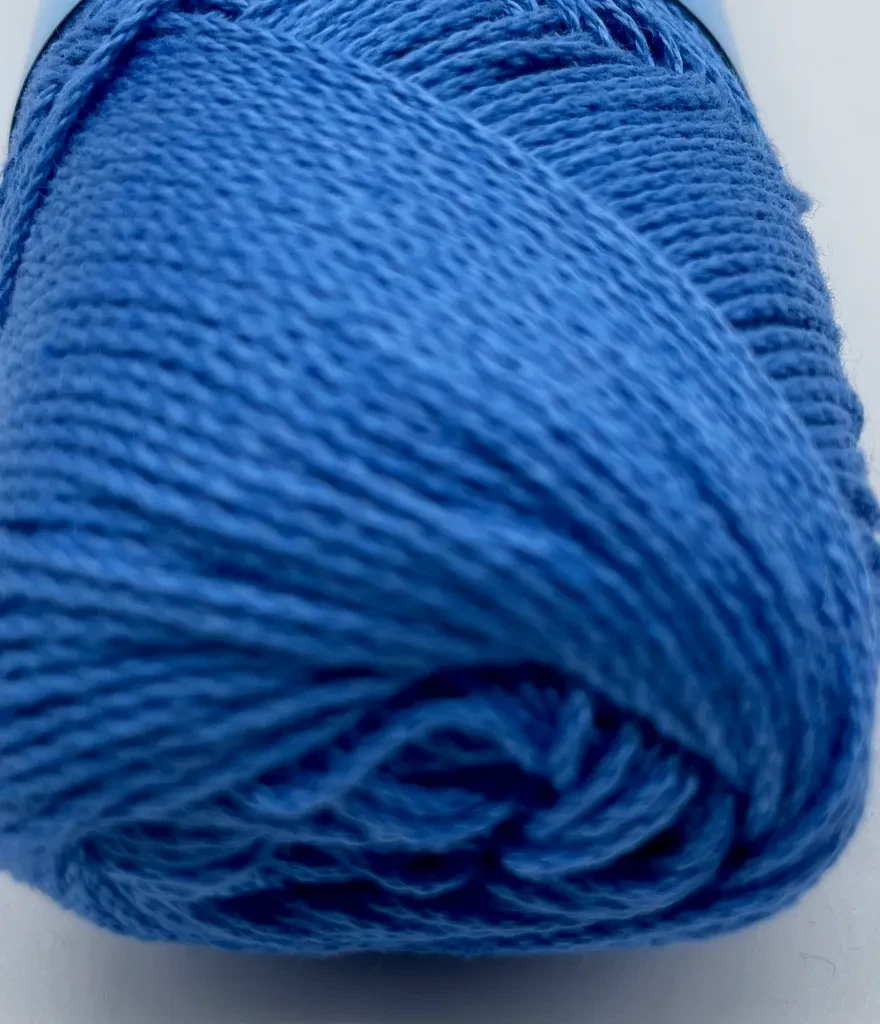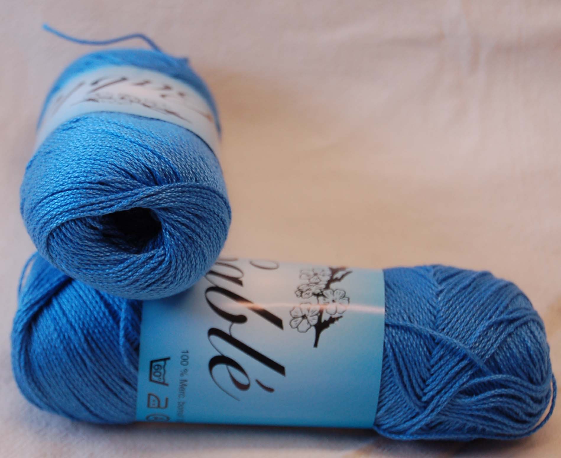 Cablé 12/6 nystan 2207 kornblå Kinna textil Kabeltvinnat 100 % merciserat bomull. 50 gram per härva, ca 170 meter. Stickor 3, virknål 2-2,5. 60 grader maskintvätt. 45 kr