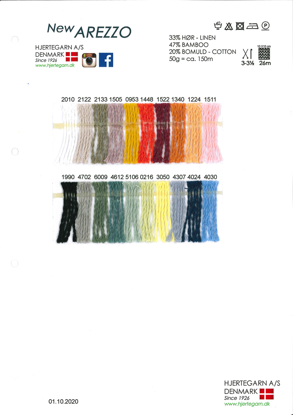 New Arezzo är ett lingarn som är blandat med bomull och Bambu. Färgskalan har fina dämpade linfärger.