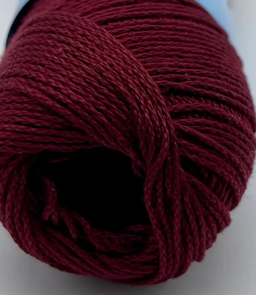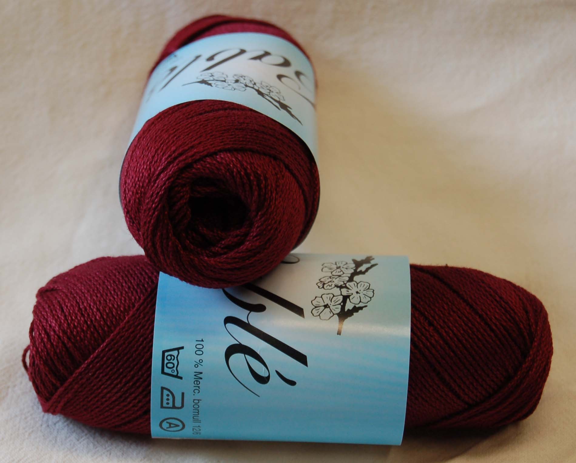 Cablé 12/6 härva 6317 plommon Kinna textil Kabeltvinnat 100 % merciserat bomull. 200 gram per härva, ca 680 meter. Stickor 3, virknål 2-2,5. 60 grader maskintvätt. 149 kr