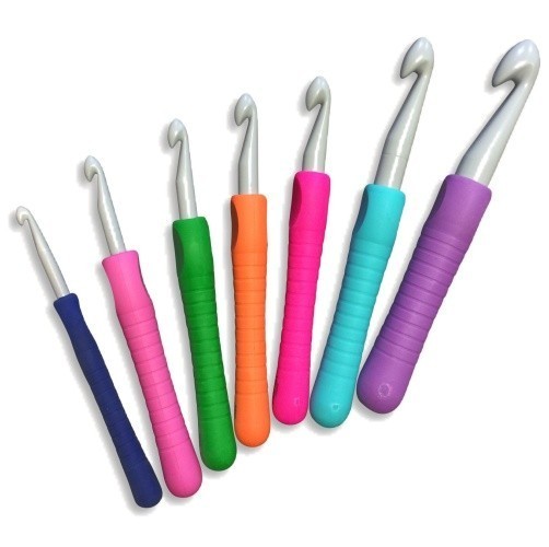 Varje storlek har sin egen färg på skaftet så du snabbt och lätt kan tar rätt storlek på virknålen