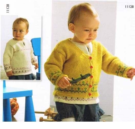 Mönster på tunika och kofta med mönsterbård för baby och barn i Eco babyull från Mark & Kattens. Garn: Eco babyull 100% ekologisk ull. Storlekar och garnåtgång: Sen nedan.
