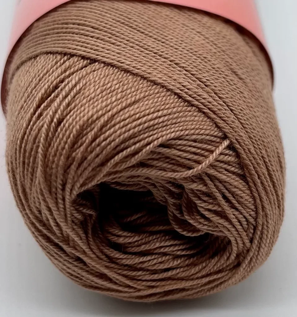 Fino 12/3 nystan 5014 rödbrun Kinna textil Fino på nystan med 100 % merciserat bomull från Kinna textil. 50g per härva, ca 335 meter. 60grader maskintvätt. 45 kr